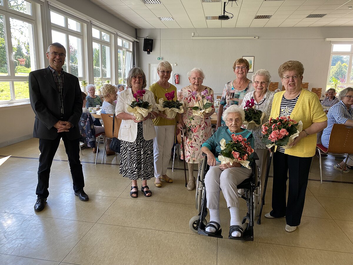 Die Vorsitzende Renate Krämer begrüßte erfreut die 46 Teilnehmerinnen und Herrn Pfarrer Biermann, der zunächst die Andacht nach der Lesung zur Tageslosung vom 26.08.2021, Petrus-Brief 2, Vers 9, hielt. Dazu passte das gelungene Lied "Du durchdringest alles". Frau Krämer und Pfarrer Biermann nahmen dann die Ehrungen für treue Mitglieder vor: Alma Horn und Elvira Mülle für 65 Jahre, Luise Degenhard, Engeline Höhling und Gudula Herrmann für 50 Jahre, Brigitte Kleinefinke, Rosemarie Lange, Helga Nettler, Helga Runte und Irmgard Süssmann für 25 Jahre Mitgliedschaft. Krankheits- und urlaubsbedingt konnten leider an diesem Nachmittag nicht alle Frauen persönlich geehrte werden.