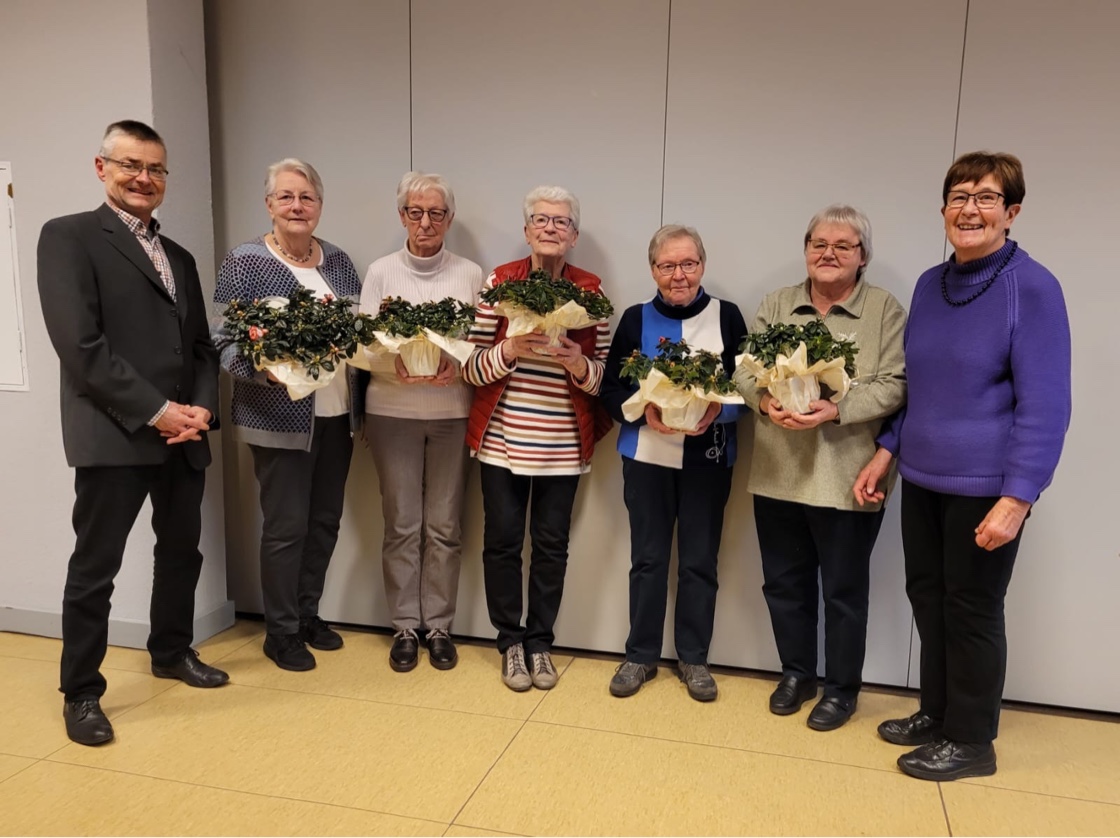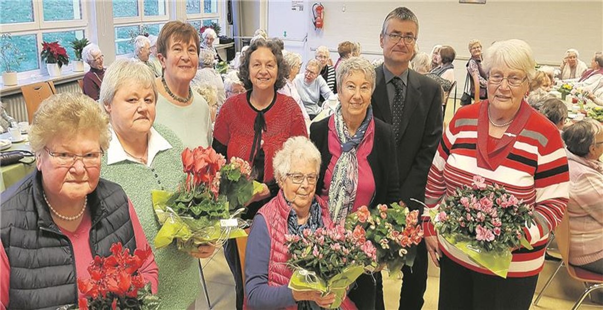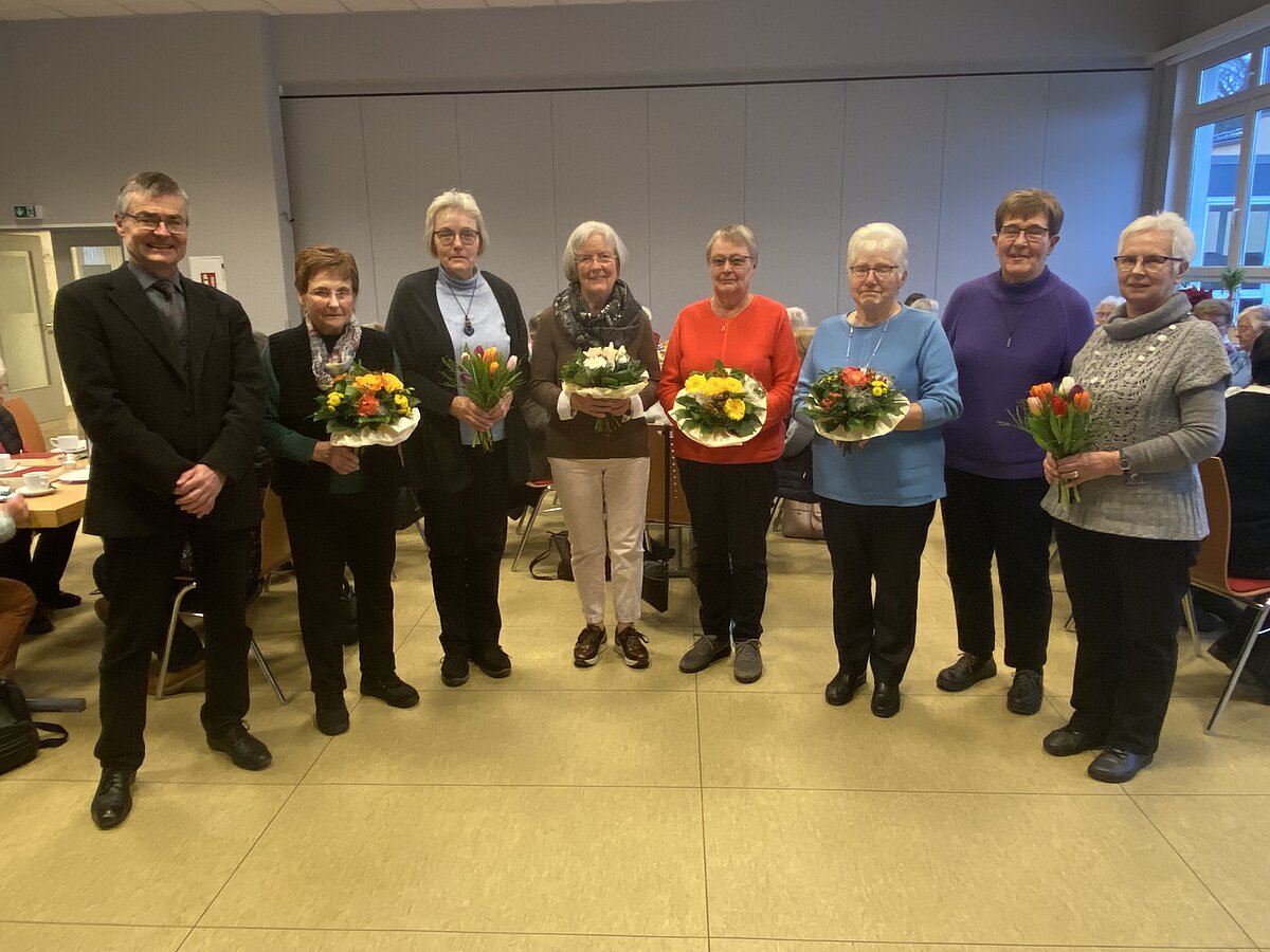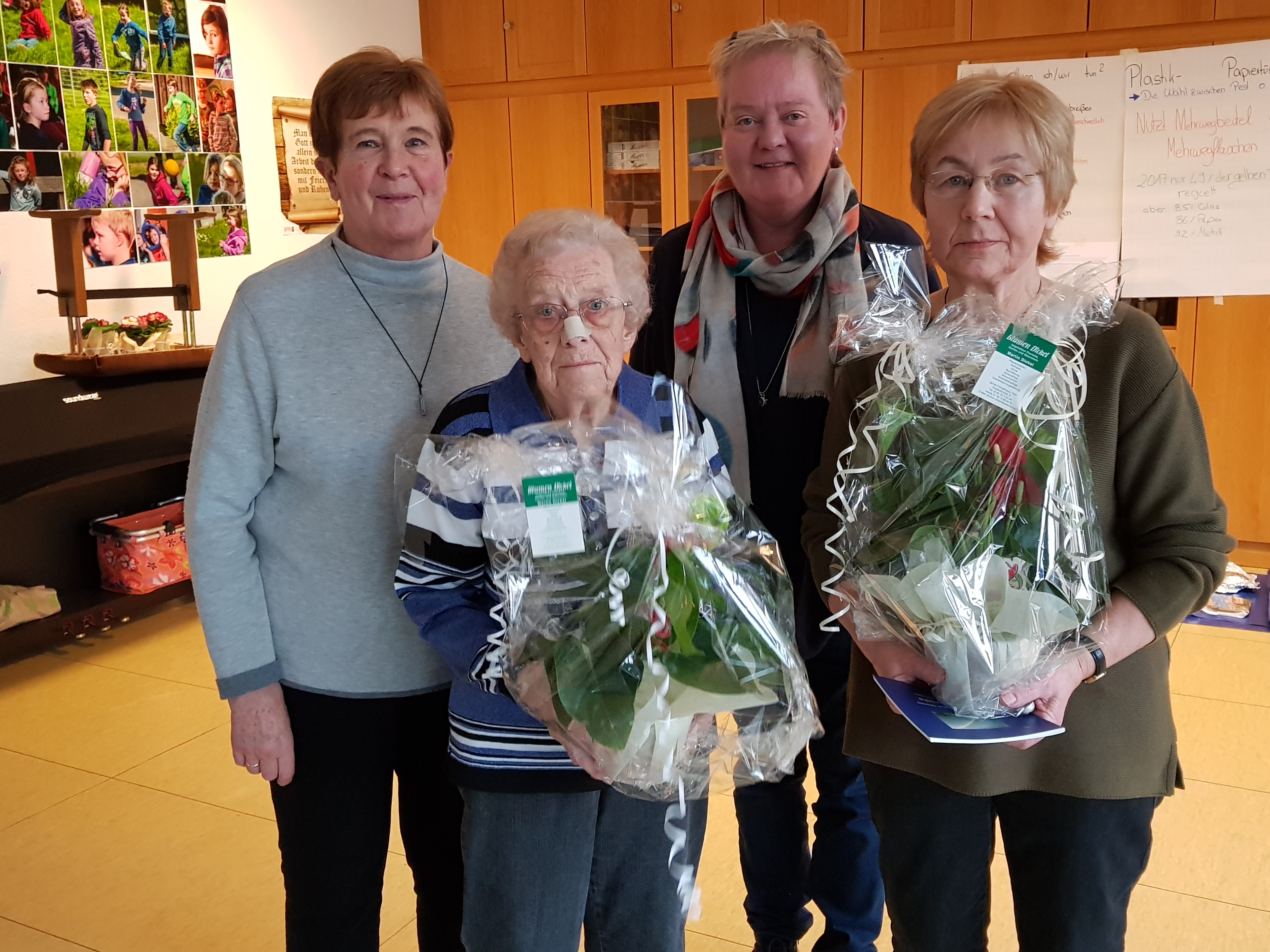 Bei der Jahreshauptversammlung 2017 wurden zahlreiche Mitglieder geehrt. Pfarrer Gisbert Biermann zeichnete für stolze 40 Jahre Renate Krämer und Irene Heidbröhmer aus. Für zehnjährige Mitgliedschaft wurden Sigrun Geffe, Hannelore Lerch und Maria Grollmann geehrt.