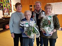 Nach dem Kaffeetrinken wurden die Ehrungen vorgenommen. Geehrte wurde Gisela Albert für 50 Jahre Mitgliedschaft, Inge Wilke für 40 Jahre, Margot Schulz, Erika Büscher, Irmtraud Schürrle, Heidi Schindler sowie Hildegard Berg für 25 Jahre. Für 20 Jahre als Bezirksfrau wurden geehrt Karin Löer und Bärbel Bok.